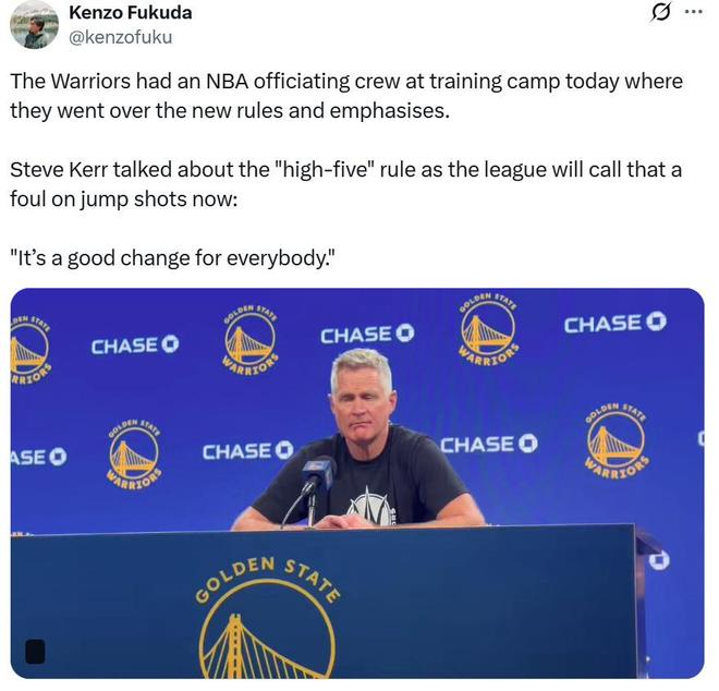 这一规则修改显然有利于投射型球员与球队,因此在规则修改后,勇士队主帅科尔也被询问到相关事宜。